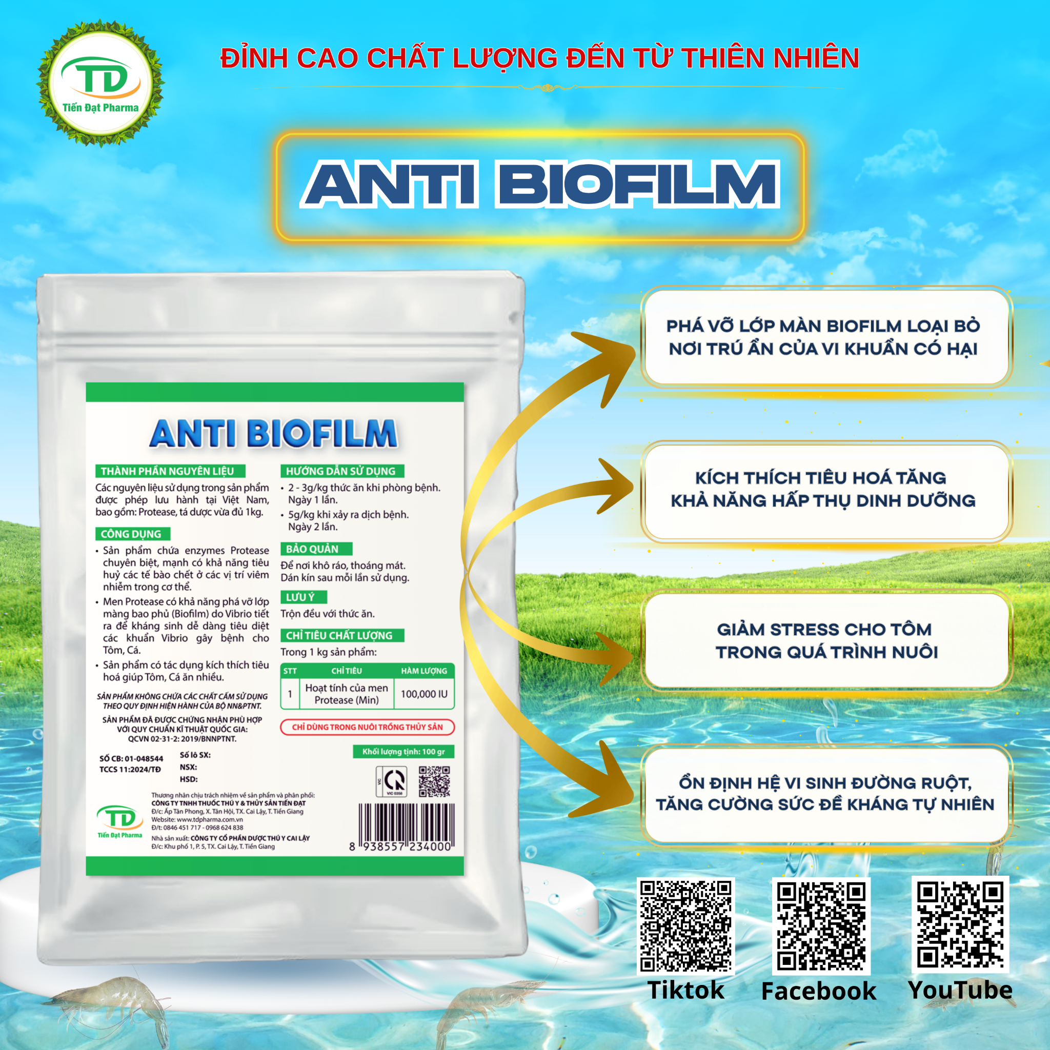 Hiểu được điều này, Tiến Đạt Pharma đã nghiên cứu và giới thiệu ANTI BIOFILM – sản phẩm enzyme chuyên biệt giúp phá vỡ biofilm, ổn định hệ vi sinh, tăng miễn dịch tự nhiên cho tôm và giảm stress trong suốt vụ nuôi.